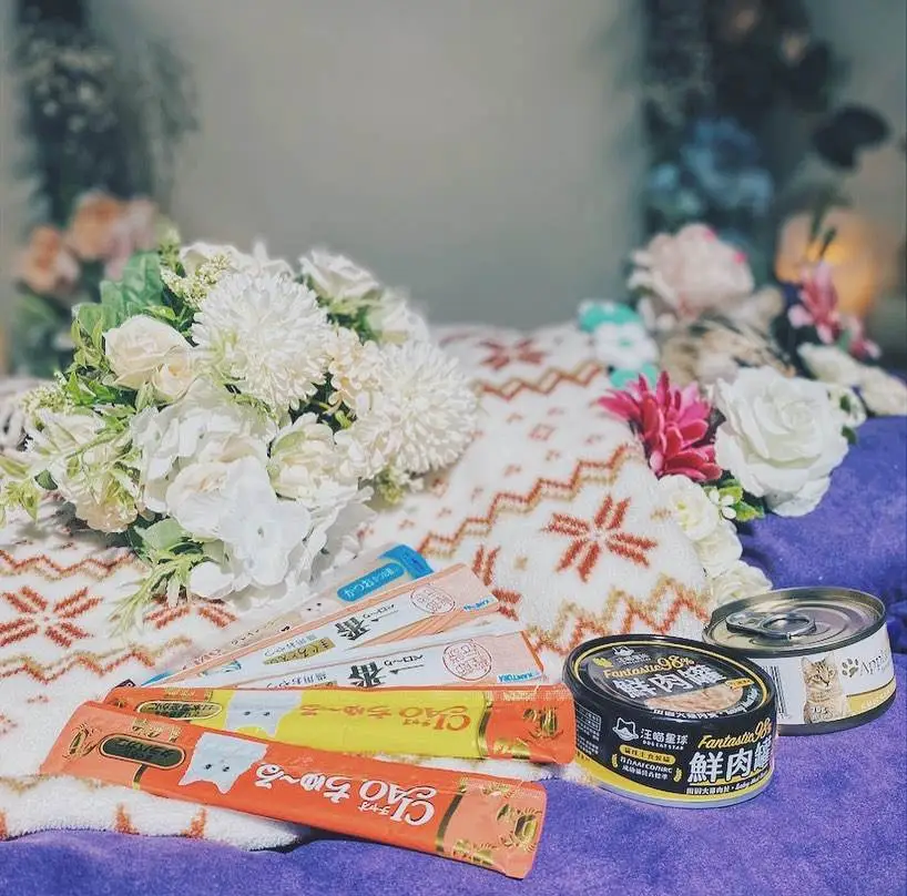 寵諾為大山哥準備了貓貓罐頭和小食,祝願大山哥在彩虹橋也能飽腹,再也沒有痛苦,看著大山哥安靜地躺著,小編也祝福牠能夠安然離世。
