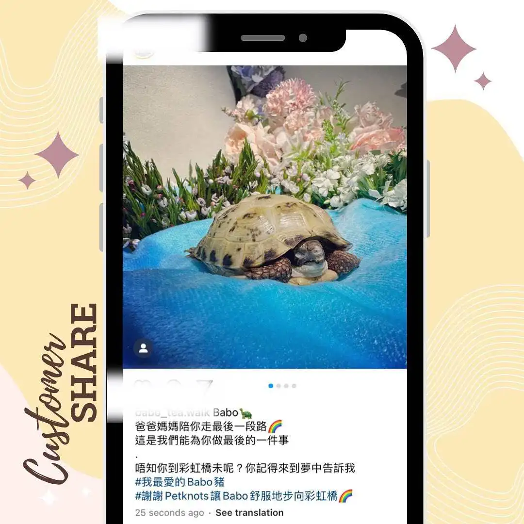 寵物善終,不應只是一場公式化的儀式,而是一場人性化的專屬告別體驗。我們店名 — Pet Knots Moments 名字當中的 KNOTS,指的正正是每隻寵物和主人之間所產生的獨有情感連結。我們致力為每一對寵物和主人找到這個情意「結」,創造出更多獨家專屬的美好回憶。就讓我們以第一次遇見毛孩的心情,好好地與牠作最後一次的道別。